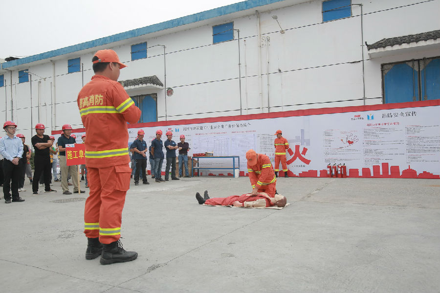 本次演練旨在檢驗建筑施工現場消防應急救援預案的可行性和可操作性,在突發消防事故時的快速反應和協調能力,人員、物資裝備配置的有效性,企業與項目部之間的應急聯動機制的運轉情況。本次消防應急救援演練中,各應急組面對險情反應迅速,準確、有效地配合消防大隊開展搶險救援工作,切實提高了在建工程安全生產事故應急處置能力。