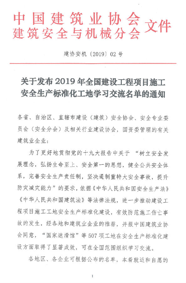 - 鳳凰縣新區(qū)綜合醫(yī)院項(xiàng)目榮獲《2019年全國建設(shè)工程項(xiàng)目施工安全生產(chǎn)標(biāo)準(zhǔn)化工地》